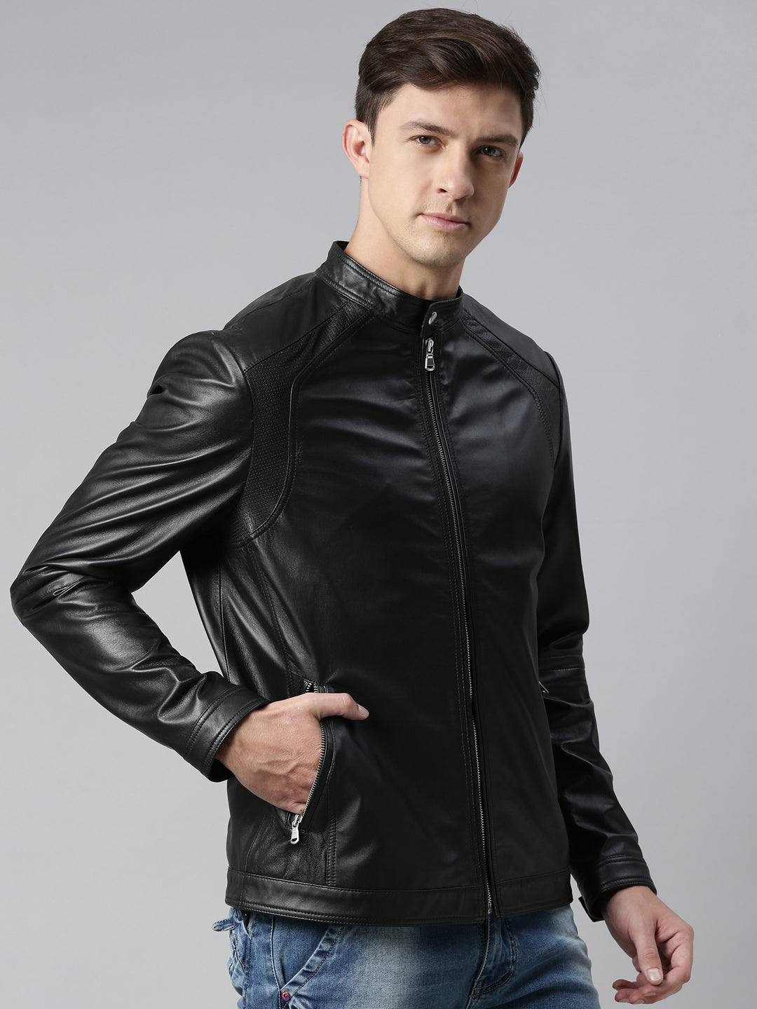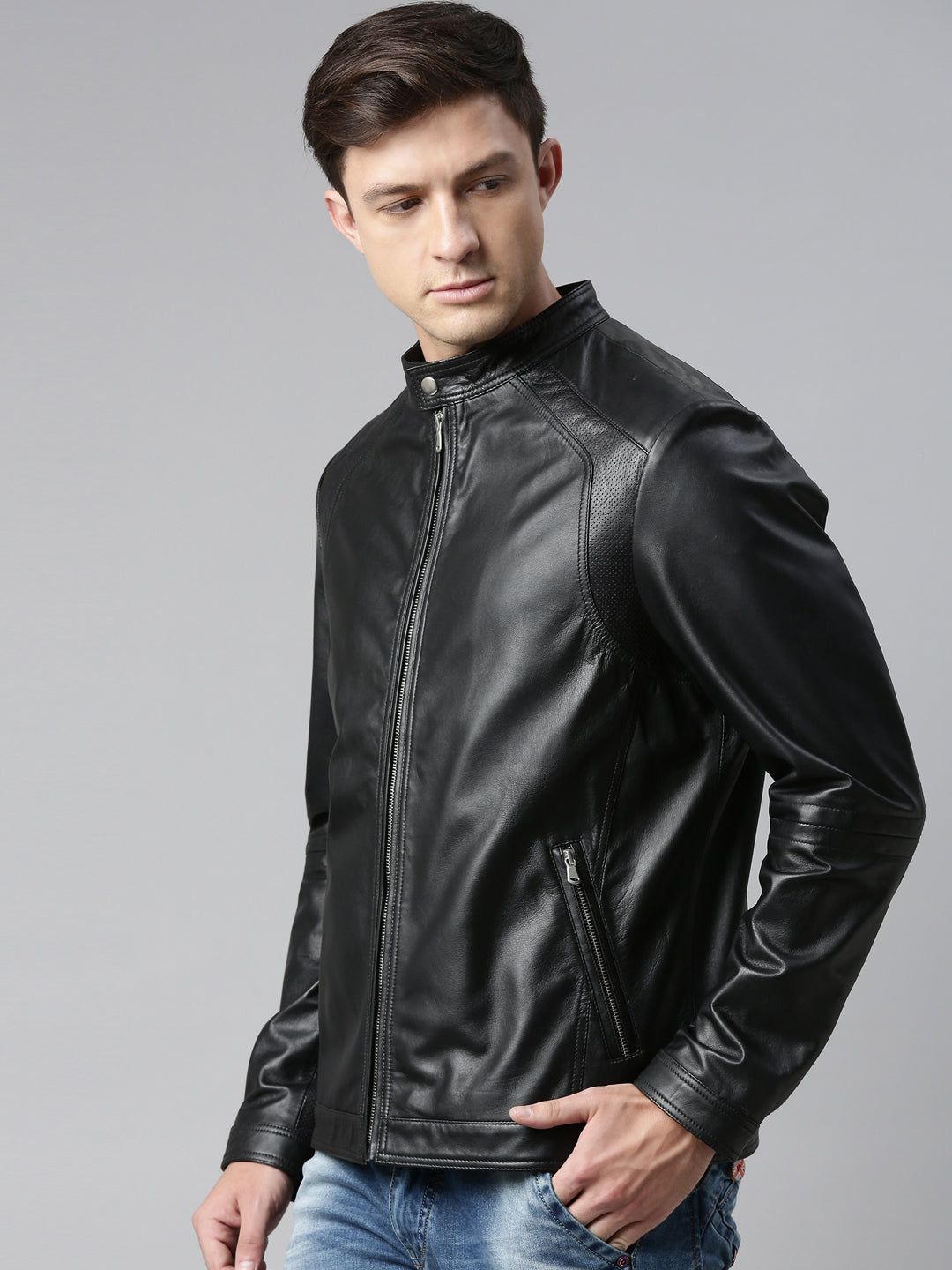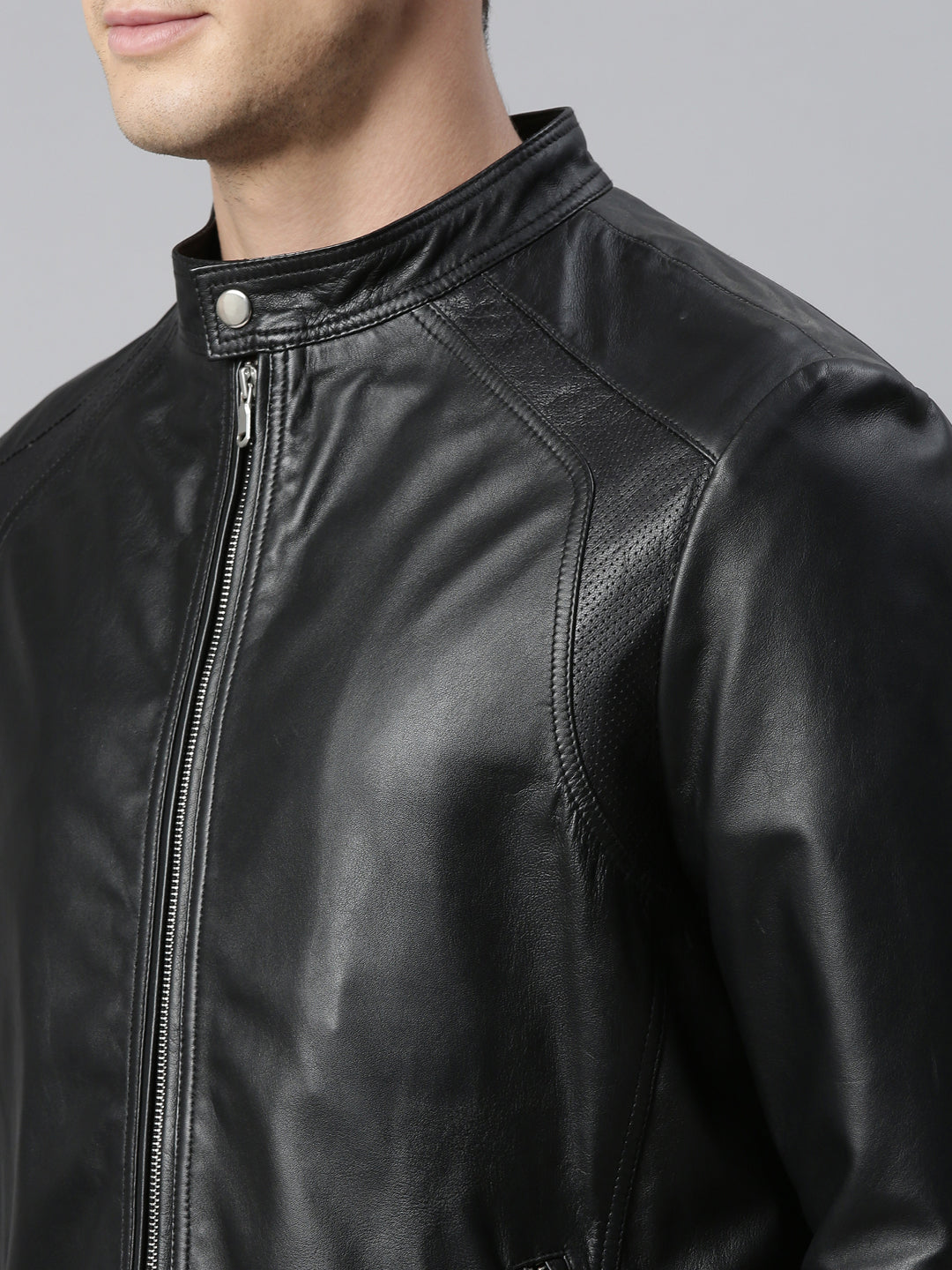 Stay warm in style this season with our Brendon Racer Jacket, crafted from premium lambskin leather to provide a sophisticated, tasteful look. This slim-straight fit jacket features a front zipper closure with top button detail, plus YKK zippers and polyester lining for added luxury. Perforated contrast leather trimmings on the front and back complete the design with a touch of flair.