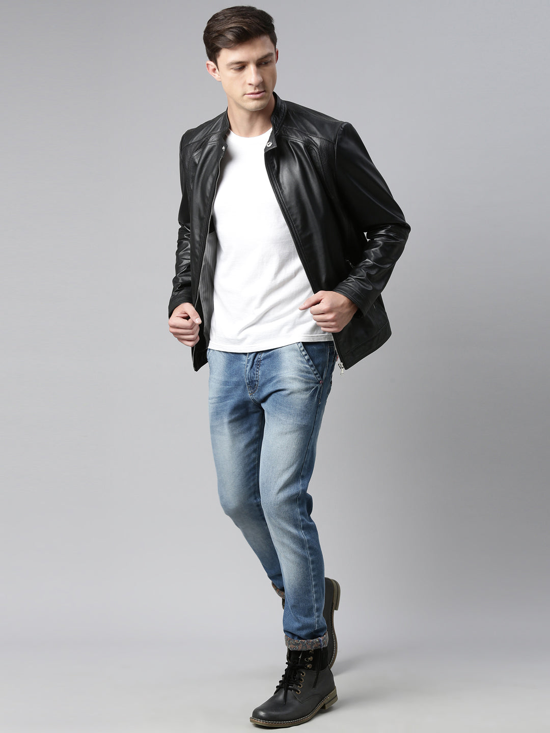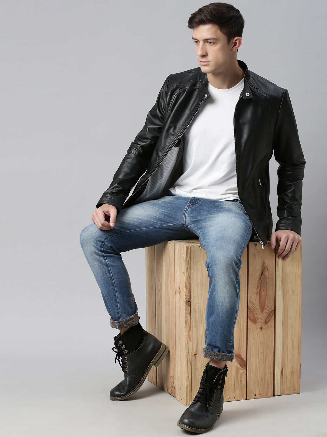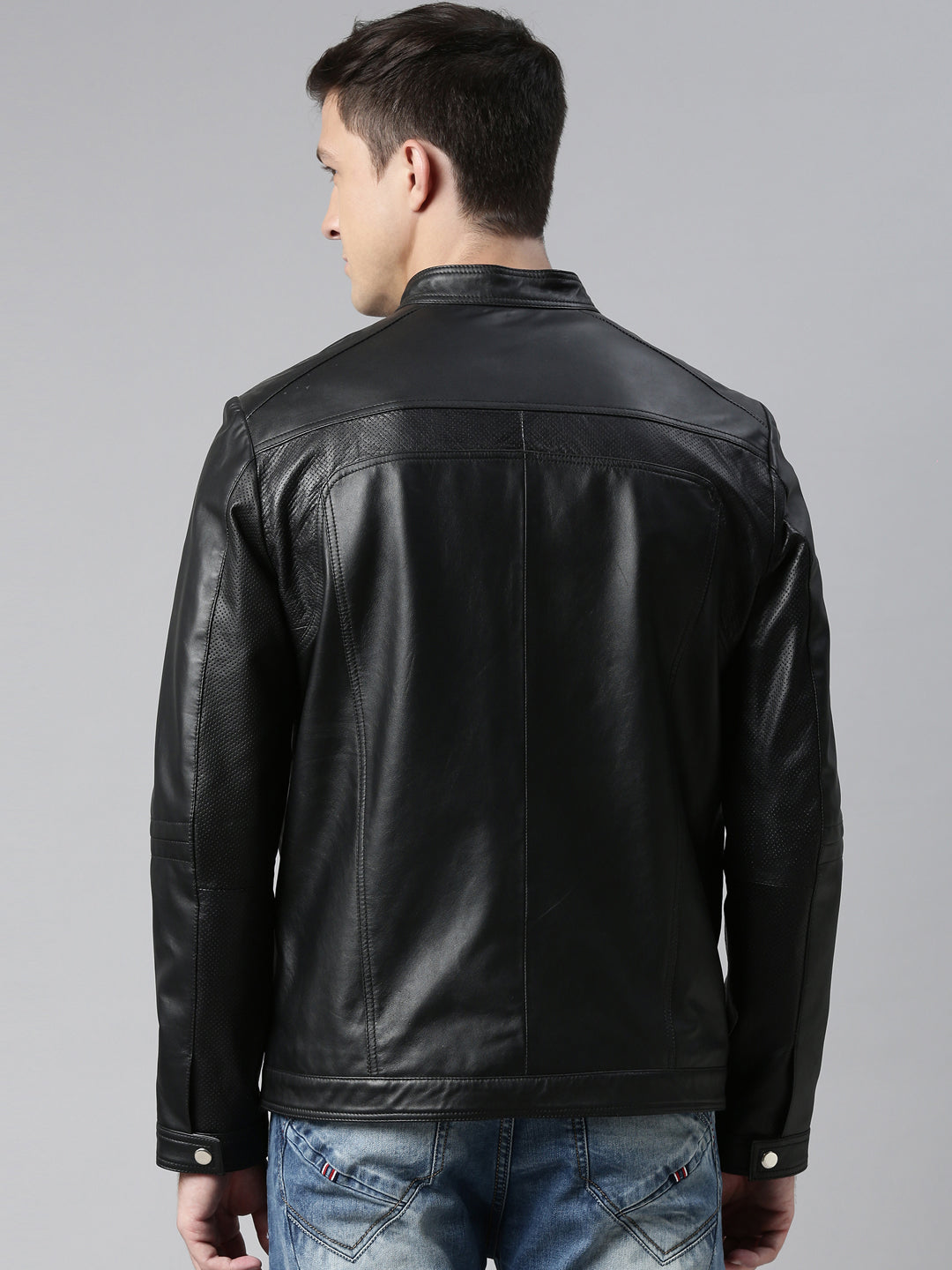 Stay warm in style this season with our Brendon Racer Jacket, crafted from premium lambskin leather to provide a sophisticated, tasteful look. This slim-straight fit jacket features a front zipper closure with top button detail, plus YKK zippers and polyester lining for added luxury. Perforated contrast leather trimmings on the front and back complete the design with a touch of flair.