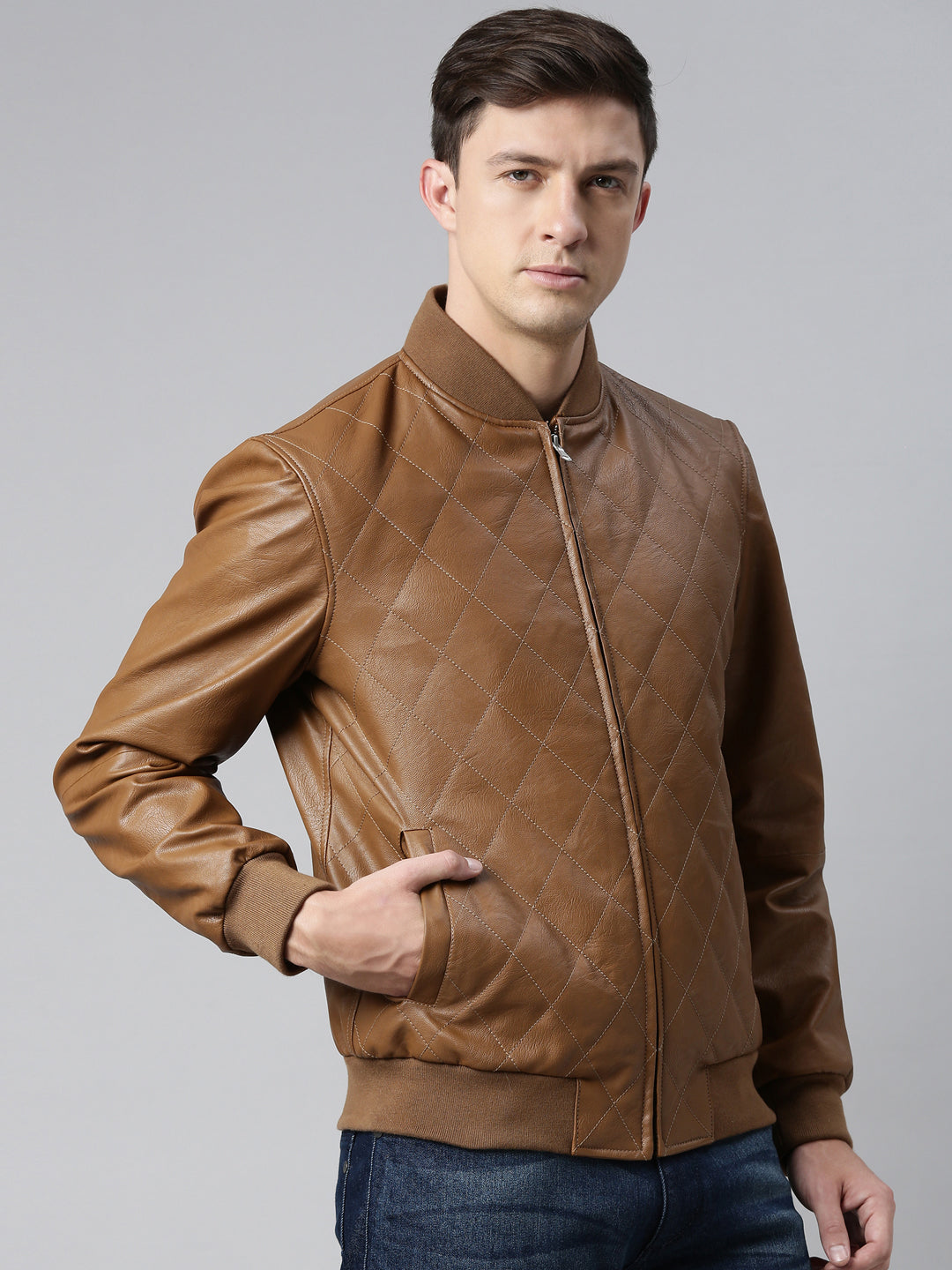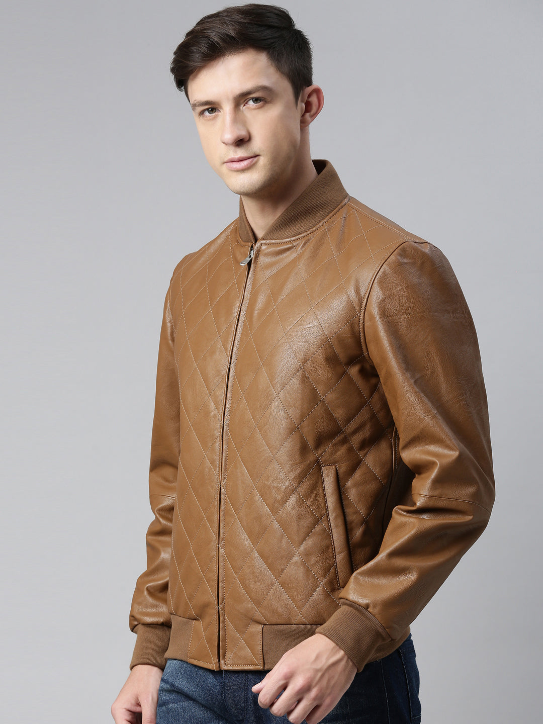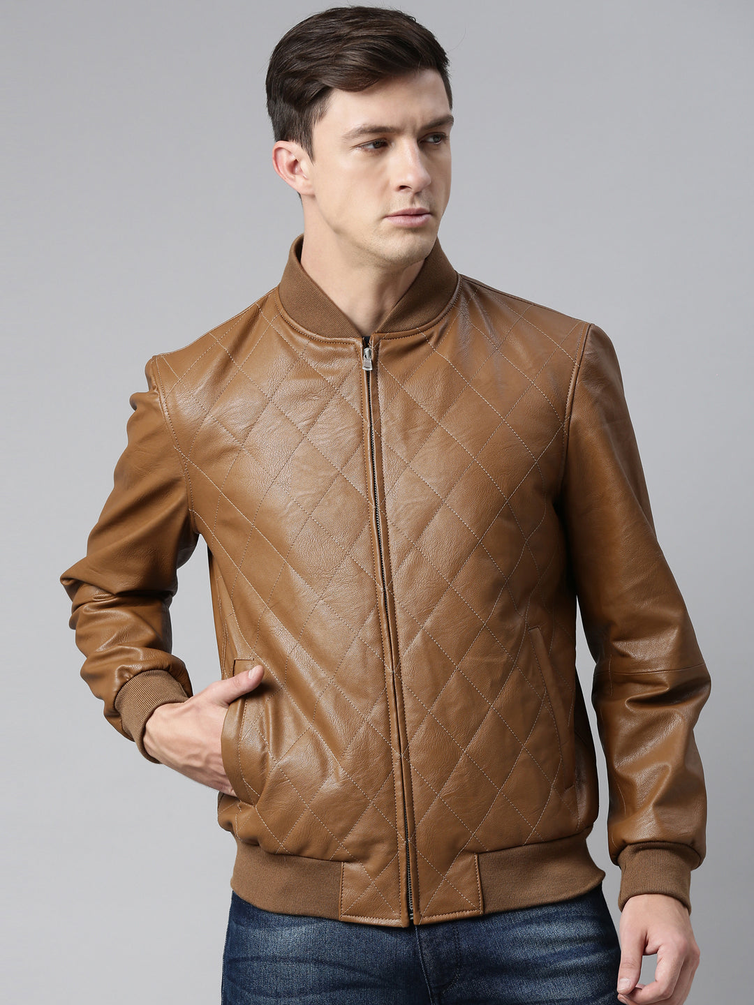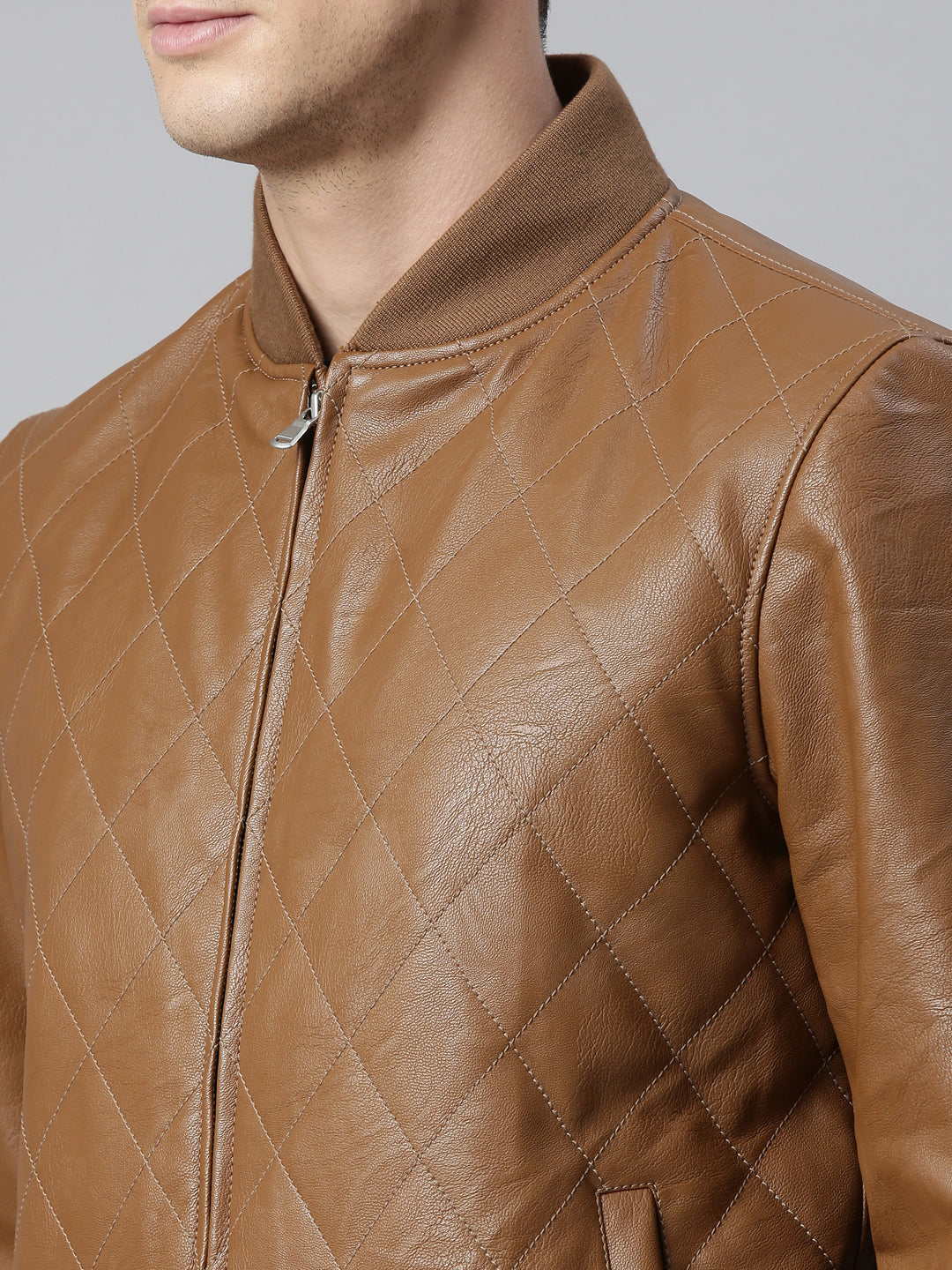 Be the life of the party in this daring Brad Varsity Jacket! Featuring a rich caramel colour, it will have you turning heads with its diamond quilted design in premium lambskin leather. Conquer the night with bomber-style styling, and polyester lining with knitted ribs and industrial grade YKK zippers - don't miss out on this exciting statement piece!